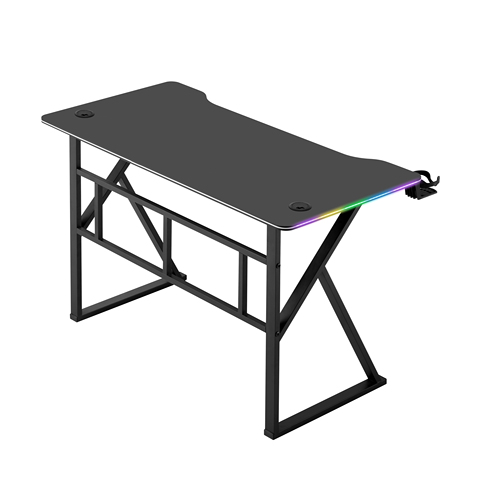 Venta al por mayor de moda Popular Simple LED Gaming Desk con RGB Computer Gaming Table con portavasos y gancho para auriculares para el hogar